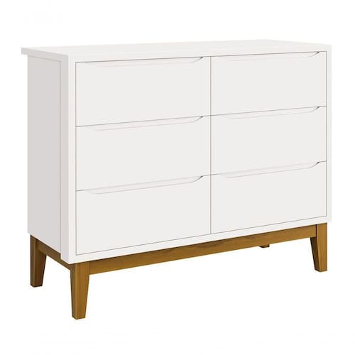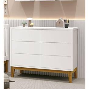 A Cômoda 6 gavetas Classic New - RELLER, é perfeita para o quartinho do seu baby, possui pés em madeira maciça que contribuem para o estilo retrô, possui um desing clean que combina com vários estilos de decoração. Contempla amplas seis gavetas, duas contendo divisórias, para uma maravilhosa organização das roupinhas e itens do seu bebê, possibilita um espaço para armazenamento, de modo que a organização do dia-a-dia possa ser mais fácil. Possui puxadores embutidos, onde as aberturas ocorrem através de recortes no MDF que possibilitam o perfeito encaixe da mão para que possa abrir as portas e gavetas.