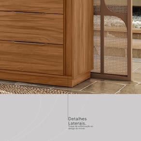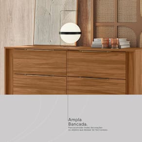 O grande diferencial está na experiência sensorial do acabamento Touch e Prime TX, que proporcionam a sensação natural da madeira ao toque, unindo uma textura agradável à alta resistência necessária para o uso diário. Além disso, sua ampla bancada é perfeita para acomodar objetos decorativos ou itens que precisam estar sempre à mão.