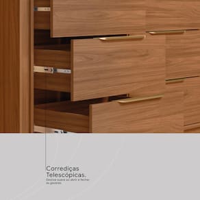 Pensada para o máximo conforto, as gavetas contam com corrediças telescópicas, garantindo uma abertura total e um movimento extremamente suave. Os puxadores ABS facilitam a higienização, enquanto as mini sapatas protegem o seu piso contra o atrito direto, tornando-a a escolha ideal para um ambiente prático e elegante.
