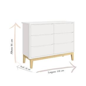 Cômoda Infantil 6 Gavetas Classic Branco Acetinado com Pés Natural Reller