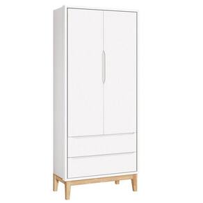 Guarda Roupa Infantil New Classic 2 Portas Branco com Pés Madeira Natural Reller