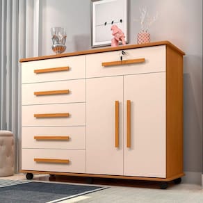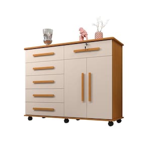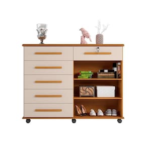 Cômoda 6 Gavetas E Sapateira Gran Luxo - Nature/off White - Cor: Bege