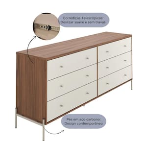 Com 6 gavetas espaçosas com corrediças telescópicas de alta qualidade que promove o deslizamento mais suave e silencioso., oferece amplo espaço de armazenamento para manter o quarto arrumado e funcional. Os puxadores em Zamac adicionam um toque de charme, enquanto o acabamento em Verniz UV Touch garante durabilidade e resistência. Seus pés em tubo de aço carbono completam o design moderno e sofisticado da peça.