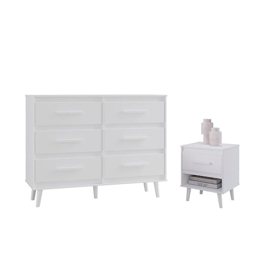 • 1x Cômoda Pé Palito 6 Gavetas Lima 1x Mesa de Cabeceira com 1 Gaveta e Nicho Lima Manual de Montagem Acessórios para Montagem
