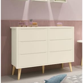 A Cômoda 6 gavetas Theo New - RELLAR, é essencial para o quartinho do seu baby, possui pés em madeira maciça no estilo palito que contribuem para o estilo retrô, possui um desing clean que combina com vários estilos de decoração. Contempla seis gavetas, duas contendo divisórias, para uma perfeita organização das roupinhas e itens do seu bebê, possibilita um enorme espaço para armazenamento, fazendo com que a organização do dia-a-dia possa ser mais fácil. Possui puxadores embutidos, onde as aberturas ocorrem através de recortes no MDF que possibilitam o perfeito encaixe da mão para que possa abrir as portas e gavetas.