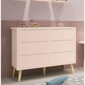A Cômoda 6 gavetas Theo New - MóveisAqui, é essencial para o quartinho do seu baby, possui pés em madeira maciça no estilo palito que contribuem para o estilo retrô, possui um desing clean que combina com vários estilos de decoração. Contempla seis gavetas, duas contendo divisórias, para uma perfeita organização das roupinhas e itens do seu bebê, possibilita um enorme espaço para armazenamento, fazendo com que a organização do dia-a-dia possa ser mais fácil. Possui puxadores embutidos, onde as aberturas ocorrem através de recortes no MDF que possibilitam o perfeito encaixe da mão para que possa abrir as portas e gavetas.
