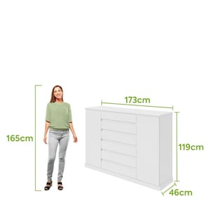 A Cômoda Vedras Lopas é uma solução completa para organização e funcionalidade. Possui 7 gavetas, sendo uma interna com chave, 2 portas com fecho toque e 3 prateleiras internas, além de um cabideiro em alumínio e espaço dedicado para sapatos. Fabricada em MDP/MDF de alta qualidade, conta com tampo robusto de 25mm, garantindo durabilidade e elegância para o ambiente. Ideal para otimizar seu espaço com estilo e funcionalidade.