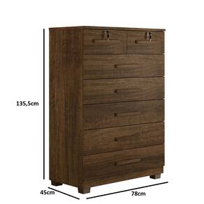 A Cômoda Barcelona com seu lindo design trás charme e elegância a qualquer espaço, produzido toda em chapa de 15 mm que garante uma boa durabilidade do produto, além de possuir 7 gavetas, sendo 2 gavetas com chave ainda contam com corrediça telescópica que proporciona uma maior suavidade em seu uso diário, acomoda muita roupa e seus acessórios tudo muito bem-organizado.