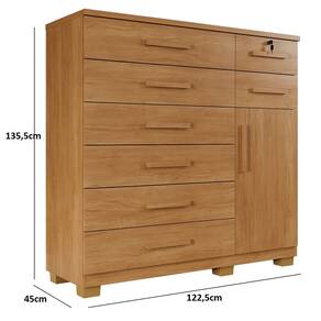 Cômoda 8 Gavetas 1 Porta com Pés New Vitoria Benetil. A Cômoda vitória plus completa seu quarto com muito charme e beleza, possui 8 gavetas muito espaçosa sendo 1 com chave, com corrediças telescópica que dá muita suavidade e resistência ,ainda possui 1 porta e tem 1 prateleira interna que constitui uma sapateira bem definida, além de produzida em chapa de 15 mm que garante uma vida útil muito maior e muita resistência.
