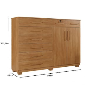 A Cômoda Triunfo vem com a proposta de completa seu quarto com muito charme e beleza, possui 8 gavetas bem espaçosa sendo 1 com chave com corrediças telescópica que dá muita suavidade e resistência, ainda conta com 2 portas, tem 2 prateleira interna que constitui uma sapateira bem definida, além de possuir tampo de 15 mm que garante uma vida útil.