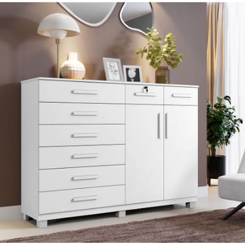 Cômoda 8 Gavetas 2 Portas New Triunfo Benetil Móveis - Branco - Off White