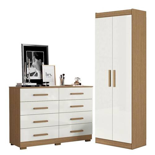 Cômoda 8 Gavetas 2014148 e Armário Multiuso 2000191 Atacama Off White - Aramóveis