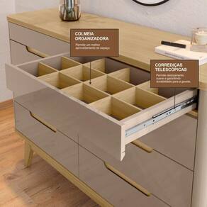 "A Cômoda 8 Gavetas Vicenza é a escolha perfeita para quem busca funcionalidade, estilo e organização em um único móvel. Com um design moderno e elegante, esta cômoda é a solução ideal para manter suas roupas e objetos pessoais de forma organizada e acessível. Cômoda Vicenza oferece amplo espaço de armazenamento para atender às suas necessidades diárias. Seja para guardar roupas, acessórios ou objetos pessoais, a mesma possui duas gavetas com colmeias organizadoras para manter tudo em ordem. Além disso, as gavetas deslizam suavemente, facilitando o acesso e tornando o uso do móvel ainda mais prático. Os puxadores em formato cava adicionam um toque de sofisticação ao design, tornando a Cômoda Vicenza não apenas funcional, mas também um item decorativo. Produto Montado: Sim Acabamento da Gaveta: Pintura UV Ambiente Principal: Quarto codigo_ean: 7900288324108 Complexidade da Montagem: Baixa: pode ser montado por uma pessoa sozinha Cor: Cinza/Hannover Cor do Produto: Cinza/Hannover Escala de Brilho: Semi-Brilho Gaveta com Chave: Não Itens Inclusos: 1 Cômoda, Kit Ferragens e Manual de Montagem Linha ou Coleção: Vicenza Manual de Montagem e Instalação: https://product-hub-prd.madeiramadeira.com.br/119469014/documents/9b31dcfe-7f2f-4fad-9cfb-f442040fcb8a3377157357017702212869385.pdf Marca: Casa D Material da Gaveta: MDF/MDP Material do Fundo: MDF Material dos Pés: Madeira Maciça Material Principal: MDF/MDP Necessita Montagem: Sim Origem do Produto: Nacional Pés Reguláveis: Não Peso: 58 kg Peso Máximo por Gaveta: 4 kg Possui Espelho: Não Possui Nichos: Não Possui Pés: 05 Possui Portas: Não Possui Prateleiras: Não Possui Rodízio: Não Quantidade de Gavetas: 08 Gavetas Recomendações de Uso, Manutenção e Limpeza: Recomenda-se limpar o produto com flanela ou pano macio seco, não utilizar produtos abrasivos, desengordurantes, álcool ou solvente. Mantê-lo em lugar livre de umidade e/ou exposição direta ao sol. Sapatas Niveladoras: Não Sistema de Montagem: Parafusos, cavilha, dobradiças, corrediças. Suporta Até (kg): 50 kg Tipo de Corrediça da Gaveta: Metálica Telescópica Tipo de Madeira Maciça dos Pés: Pinus Tipo de Puxador da Gaveta: Embutido