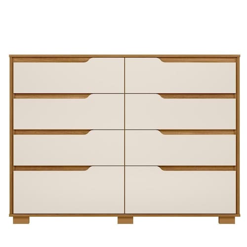 A Cômoda Geórgia une funcionalidade e design moderno. Com 8 gavetas com corrediças telescópicas e puxadores usinados, oferece excelente espaço para organizar roupas e objetos pessoais. Os pés em PVC facilitam a limpeza e tornam o móvel ainda mais prático.