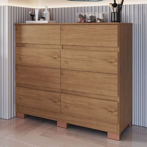 Com acabamentos em 45º no tampo e nas gavetas, a Cômoda Lara traz personalidade e estilo ao seu ambiente. Os pés que acompanham o produto completam o design. Ela possui oito gavetas com corrediças telescópicas, garantindo maior estabilidade na abertura. Os puxadores invisíveis das gavetas proporcionam uma integração harmoniosa ao espaço. Produto Montado: Sim Acabamento da Gaveta: Pintura Texturizada UV Ambiente Principal: Quarto codigo_ean: 7900288016751 Complexidade da Montagem: Média: pode ser montado por mais de uma pessoa e/ou necessite de maior conhecimento para montagem Cor: Macadâmia Cor do Produto: Macadâmia Cor Interna: Marrom Escala de Brilho: Semi-Fosco Escala de Brilho da Gaveta: Semi-Fosco Gaveta com Chave: Não Itens Inclusos: 1 Cômoda, 1 Kit Ferragens e 1 Manual de Montagem. Linha ou Coleção: Complemento Manual de Montagem e Instalação: https://product-hub-prd.madeiramadeira.com.br/968400/documents/c4d292e3-16ed-45f7-8d2c-4f874cc7d9a42524737531417303738340607.pdf Marca: Móveis Castro Material da Gaveta: MDP Material do Fundo: mdf Material dos Pés: Plástico Material Principal: MDP Necessita Montagem: Sim Origem do Produto: Nacional Pés Reguláveis: Não Peso: 44,4 kg Peso Máximo por Gaveta: 5 kg Possui Espelho: Não Possui Nichos: Não Possui Pés: 06 Possui Portas: Não Possui Prateleiras: Não Possui Rodízio: Não Quantidade de Gavetas: 08 Gavetas Recomendações de Uso, Manutenção e Limpeza: Limpeza com pano umedecido. Sapatas Niveladoras: Não Sistema de Montagem: Parafuso, minifix e cavilha. Suporta Até (kg): 40 kg Tipo de Corrediça da Gaveta: Metálica Telescópica Tipo de Puxador da Gaveta: Não Possui