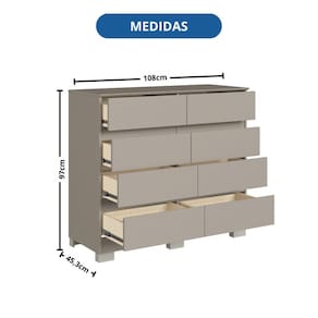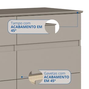 Com acabamentos em 45º no tampo e nas gavetas, a Cômoda Lara traz personalidade e estilo ao seu ambiente. Os pés que acompanham o produto completam o design. Ela possui oito gavetas com corrediças telescópicas, garantindo maior estabilidade na abertura. Os puxadores invisíveis das gavetas proporcionam uma integração harmoniosa ao espaço. Produto Montado: Sim Acabamento da Gaveta: Pintura Texturizada UV Ambiente Principal: Quarto codigo_ean: 7900288016720 Complexidade da Montagem: Média: pode ser montado por mais de uma pessoa e/ou necessite de maior conhecimento para montagem Cor: Níquel Cor do Produto: Níquel Cor Interna: Cinza Escala de Brilho: Semi-Fosco Escala de Brilho da Gaveta: Semi-Fosco Gaveta com Chave: Não Itens Inclusos: 1 Cômoda, 1 Kit Ferragens e 1 Manual de Montagem. Linha ou Coleção: Complemento Manual de Montagem e Instalação: https://product-hub-prd.madeiramadeira.com.br/968396/documents/c9c3ed1a-6b25-4785-98d9-3654e306426e2524737531417303738340607.pdf Marca: Móveis Castro Material da Gaveta: MDP Material do Fundo: mdf Material dos Pés: Plástico Material Principal: MDP Necessita Montagem: Sim Origem do Produto: Nacional Pés Reguláveis: Não Peso: 44,4 kg Peso Máximo por Gaveta: 5 kg Possui Espelho: Não Possui Nichos: Não Possui Pés: 06 Possui Portas: Não Possui Prateleiras: Não Possui Rodízio: Não Quantidade de Gavetas: 08 Gavetas Recomendações de Uso, Manutenção e Limpeza: Limpeza com pano umedecido. Sapatas Niveladoras: Não Sistema de Montagem: Parafuso, minifix e cavilha. Suporta Até (kg): 40 kg Tipo de Corrediça da Gaveta: Metálica Telescópica Tipo de Puxador da Gaveta: Não Possui