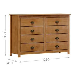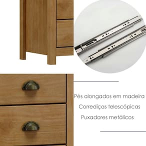 Cômoda projetada para quem busca um móvel sofisticado e atemporal. Com 125cm de largura e produzida em madeira maciça de pinus de reflorestamento, sua estrutura robusta garante durabilidade e resistência. Seu acabamento com pintura acetinada em verniz PU e UV realça a beleza natural da madeira enquanto protege contra desgastes do dia a dia. O design funcional inclui 08 gavetas com corrediças telescópicas, permitindo uma abertura suave e silenciosa, puxadores metálicos no estilo concha que agregam um charme artesanal, e pés alongados em madeira que trazem leveza e sofisticação ao móvel. Este móvel chegará em sua casa separado em 01 volume.