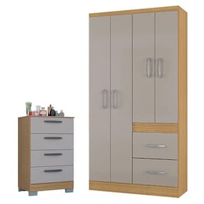 Cômoda 867 4 Gavetas com Guarda Roupa Solteiro Milão 4 Portas Damasco Off White - Poquema