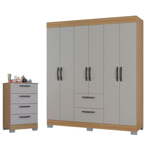 Está procurando móveis para seu quarto? Então apresentamos para você este belo conjunto composto pela cômoda da linha 867 e o guarda roupa da linha Tóquio. Tanto a cômoda quanto o guarda roupa conta com gavetas equipadas com corrediças metálicas proporcionando um deslizamento suave facilitando o acesso. Os puxadores e os pés são em plástico resistente, oferecendo estabilidade. O guarda roupa conta com seis portas permitindo uma excelente organização para suas roupas e acessórios. Fabricados pela Poquema, são desenvolvidos em MDP oferecendo praticidade, durabilidade e um design moderno, sendo o conjunto perfeito para seu quarto. Confira e aproveite!