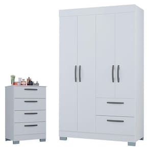 Cômoda 867 4 Gavetas e Guarda Roupa Solteiro Tóquio 4 Portas Branco Brilho - Poquema