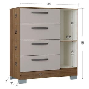 Cômoda 868 4 Gavetas e 1 Porta Castanho Off White - Poquema