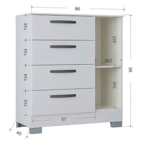 Cômoda 868 4 Gavetas e 1 Porta Branco Brilho - Poquema