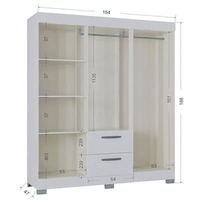 Cômoda 868 4 Gavetas e 1 Porta com Guarda Roupa Casal Tóquio 6 Portas Branco Brilho - Poquema