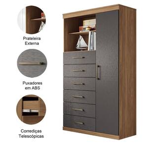 Cômoda Alta 1 Porta 6 Gavetas Marbella Jatobá/grafite