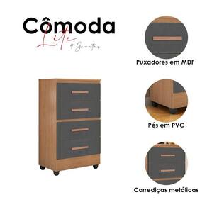 Cômoda Ambiente Lite 4 Gavetas Nature Cinza Móveis Leão