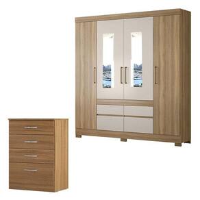 Cômoda Astral e Guarda Roupa Casal Bilbao Amêndola Off White com Espelho - Demóbile