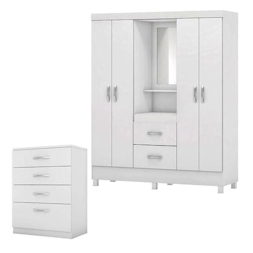 Cômoda Astral e Guarda Roupa Casal Lord Branco - Demóbile