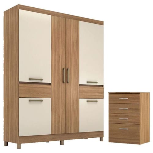 Cômoda Astral e Guarda Roupa Casal Mauá Amêndola Off White Demóbile