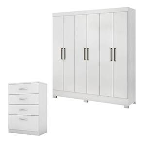 Cômoda Astral e Guarda Roupa Casal Prático Branco - Demóbile