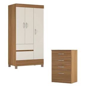 Cômoda Astral e Guarda Roupa Solteiro Amêndola Off White - Demóbile