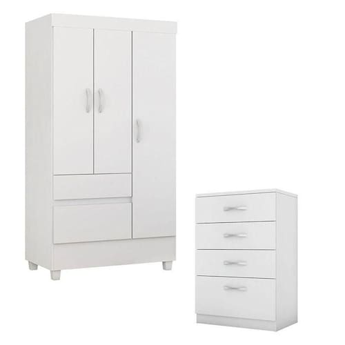 Cômoda Astral e Guarda Roupa Solteiro Branco - Demóbile