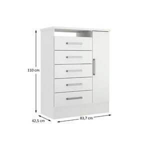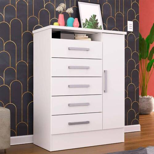 Cômoda Aurora 5 Gavetas E 1 Porta De Abrir Em Mdp E Mdf Rodial Branco