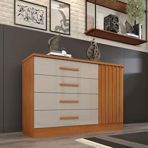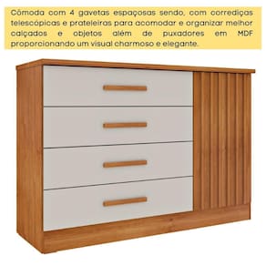 Cômoda Barcelona 4 Gavetas E 1 Porta Ripada Tcil Cor:cinamomo/off