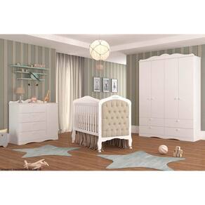 Cômoda Infantil Encanto c/ 1 Porta e 4 Gavetas Nature/Branco - Permóbili Baby