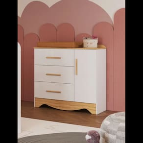 A Cômoda Clara 1 Porta Plus é um produto 100% MDF e possui pintura atóxica. Sua estrutura é fabricada em chapa de 12 mm, sendo seu tampo superior em chapa de 15 mm. Possui puxadores em MDF revestido com papel melamínico e gavetas com corrediças telescópicas.