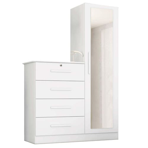 A Cômoda Belize 4 Gavetas 1 Porta com Espelho Albatroz é perfeita para você que procura praticidade e organização para o seu quarto. Preparada para acomodar peças de todos os tamanhos, conta com quatro gavetas e um armario multiuso lateral para manter tudo bem organizado. Possui um excelente espaço, com puxadores em MDF Revestidos e as corrediças telescópicas.