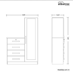 Cômoda Belize Plus Branco Fosco Liso - Albatroz Móveis Cômoda Belize Plus - Albatroz Móveis:A Cômoda Belize Plus da Albatroz Móveis é a combinação perfeita entre design moderno e funcionalidade. Com linhas elegantes e acabamento impecável, esta cômoda adiciona charme e estilo ao seu ambiente, enquanto oferece amplo espaço de armazenamento para suas roupas e acessórios. Suas gavetas espaçosas deslizam suavemente, facilitando o acesso aos seus pertences e garantindo praticidade no dia a dia. Além disso, seu design compacto permite que seja facilmente integrada a diferentes tipos de decoração. Construída com materiais de alta qualidade, esta cômoda é resistente e durável, garantindo sua satisfação por muitos anos. Renove seu espaço com a Cômoda Belize Plus e tenha um ambiente organizado e cheio de ões do Produto Montado:Altura: 161cmLargura: 109cmProfundidade: 41cmObservações:- Produto em MDP- Corrediça Telescopica- Pés em ABS- Pintura Ultravioleta