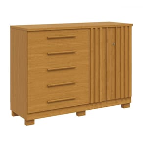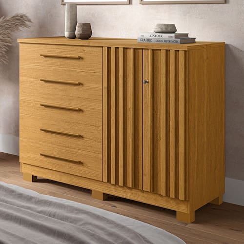 O(a) Cômoda Bella 2 Portas Ripadas e 5 Gavetas 100% Mdf Cinamomo - Acp Móveis é produzido em MDF na escala de brilho Ajustar, e possui um grau de dificuldade de montagem: Médio.