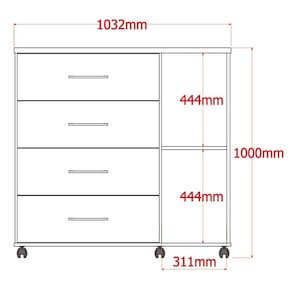 Tampo em MP de 25mm, Corrediça telescopicas, Rodízios e Puxadores Cromados
