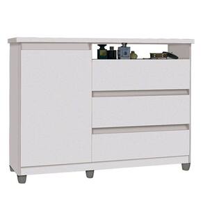 Aliada da organização do seu dormitório, a Cômoda Sky é a peça que faltava para garantir um dia a dia mais otimizado e um ambiente bem decorado. Ela pode ter o uso compartilhado com o do guarda-roupa já que as gavetas se reservam para peças menores e dobráveis, mas se o seu cômodo é pequeno, ela também vai bem como a protagonista para deixar tudo sempre à mão. Ah, além do visual charmoso que ajuda na composição do lar-style, a peça ainda tem um amplo tampo para você dispor cosméticos, enfeites ou outros itens pertinentes à sua rotina. Agora é só combiná-la com o restante do mobiliário e conquistar o quarto dos seus sonhos! Descrição do Tamanho Altura: 100 cm Largura: 97 cm Profundidade: 43,8 cm Características: Número de portas : 1 Porta Número de gavetas: 3 Gavetas Tipo de pé: Fixo de PVC Acabamento: Fosco Material da dobradiça/trilho da porta Metal Material da estrutura MDP Espessura do material da estrutura (mm) 12 Número de nichos: 1 Número de pés 6 Peso suportado máximo (kg) 60 Atenção! - Confira as dimensões deste produto e certifique-se de que passará normalmente por supostos elevadores, portas, escadas e/ou corredores de sua moradia; - As imagens são ilustrativas, eletrodomésticos e demais objetos que compõem o cenário, não fazem parte do anúncio; - Sobre a tonalidade das cores, poderá ocorrer alterações conforme a configuração do seu monitor. - Orientamos que a montagem e instalações do produto seja realizado por um técnico de sua confiança, após a sua entrega. - Oferecemos retirada em nossa loja Saimys Móveis na Av. Ragueb Chohfi, °3411 (08341-420) para não haver custo de envio.