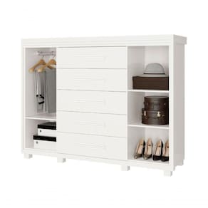 Cômoda Sapateira Branca em MDF com 5 Gavetas e 2 Portas Opções de Montagem Diferenciadas Transforme seu ambiente com a elegante e funcional Cômoda Sapateira Branca em MDF. Este móvel versátil combina sofisticação e praticidade, sendo ideal para organizar roupas, sapatos e acessórios. Características Principais: Material de Alta Qualidade: Fabricada em MDF de alta resistência, garante durabilidade e acabamento impecável. Design Funcional: Com 5 gavetas espaçosas e 2 portas, oferece amplo espaço para armazenamento. As gavetas possuem reforço no fundo, proporcionando maior suporte para itens pesados. Prateleiras Móveis: Inclui 4 prateleiras ajustáveis, permitindo personalizar o espaço interno conforme suas necessidades. Pés em Madeira: Pés robustos em madeira, assegurando estabilidade e um toque de elegância. Opções de Montagem: Oferece duas opções de montagem diferenciadas, adaptando-se ao seu espaço e preferências de design. Acabamento Branco: O acabamento branco traz um ar de modernidade e frescor ao ambiente, combinando facilmente com diversos estilos de decoração. Benefícios Adicionais: Organização Eficiente: Ideal para quem busca um móvel multifuncional que otimize o espaço e mantenha tudo em ordem. Versatilidade: Perfeita para quartos, closets, corredores e até mesmo escritórios, adaptando-se a diferentes ambientes. Montagem Simples: Acompanha manual detalhado para facilitar a montagem, mesmo com as opções diferenciadas de configuração. Invista em uma peça que une design, qualidade e funcionalidade. A Cômoda Sapateira Branca em MDF com 5 Gavetas e 2 Portas é a escolha perfeita para quem deseja organizar e decorar o ambiente com bom gosto. Informação Importante - AS IMAGENS SÃO MERAMENTE ILUSTRATIVAS. - Acompanha . - Objetos das Imagens não acompanha o produto. - Produto vai desmontado. - Montagem por conta do comprador - Acompanha Kit de Ferragens e Manual para Montagem. - É recomendado que a montagem seja feita por um montador de sua confiança.
