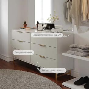 06 gavetas com reforço central e corrediças telescópicas (suportam 5kg).