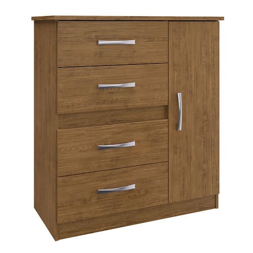 Cômoda: ------------------------------------------- Quantidade de Gavetas: 4 Gavetas Quantidade de Portas: 1 Porta Possui Espelho: Não