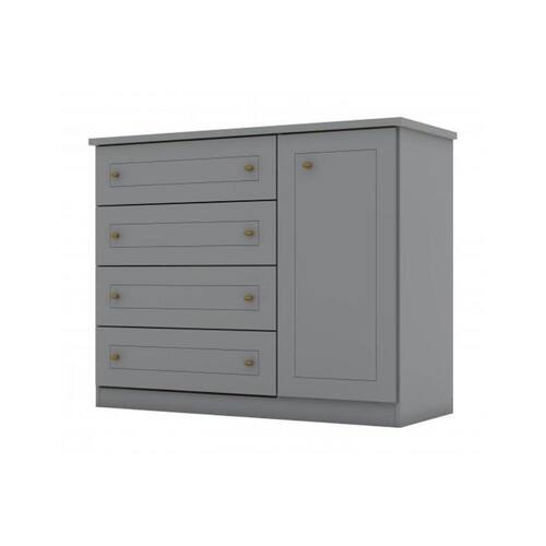Cômoda de Quarto Americana c/ 1 Porta e 4 Gavetas Cinza - Henn