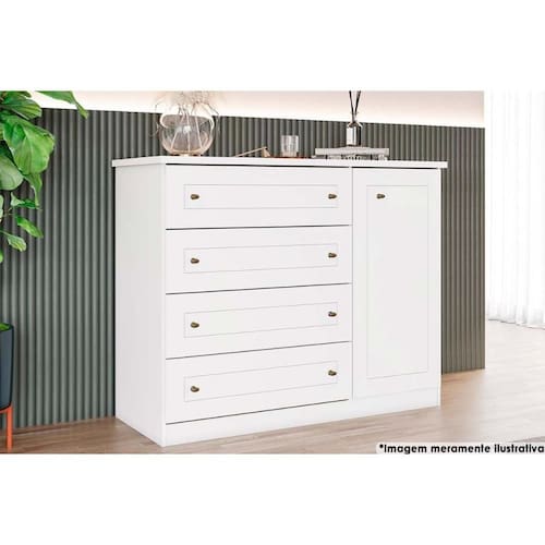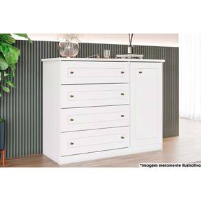 Cômoda de Quarto Americana c/ 1 Porta e 4 Gavetas Branco - Henn