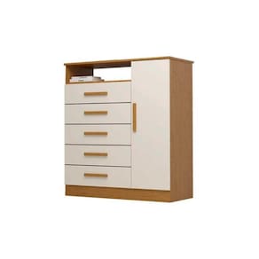 Cômoda de Quarto Madri c/ 1 Porta 1 Nicho e 5 Gavetas Cinamomo/Off White - ACP
